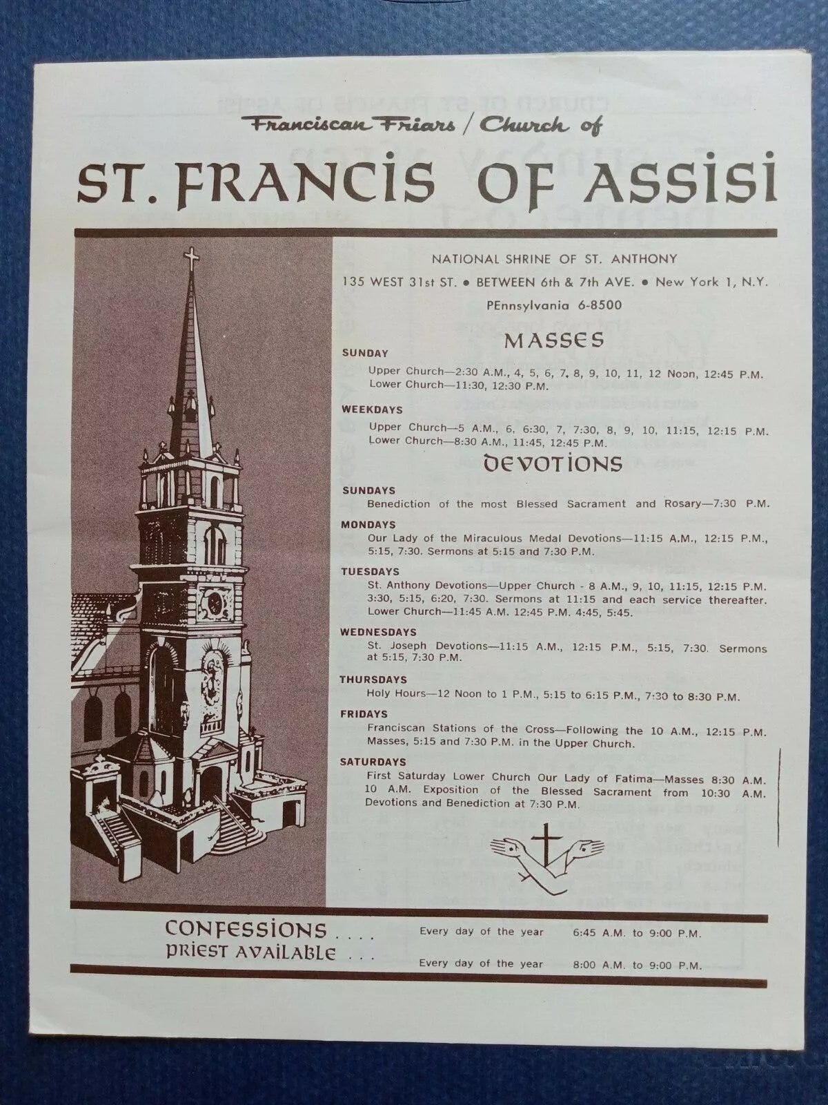 Compare this Church schedule from 1950, shared by Nico Fassino (admittedly in New York City), to those of an average, even large, parish today, and a key cause of the managerialist distraction and infiltration within the Church is evident.