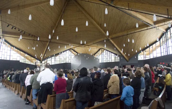 As Colleen McDannell recounts in her book The Spirit of Vatican II, the revolution in the Church can’t be separated from demographic changes in broader 20th-century society. As masses of people moved to the sprawl of the suburbs in the 1960s, new, distant, large, and less-local parishes sprouted up to serve them.